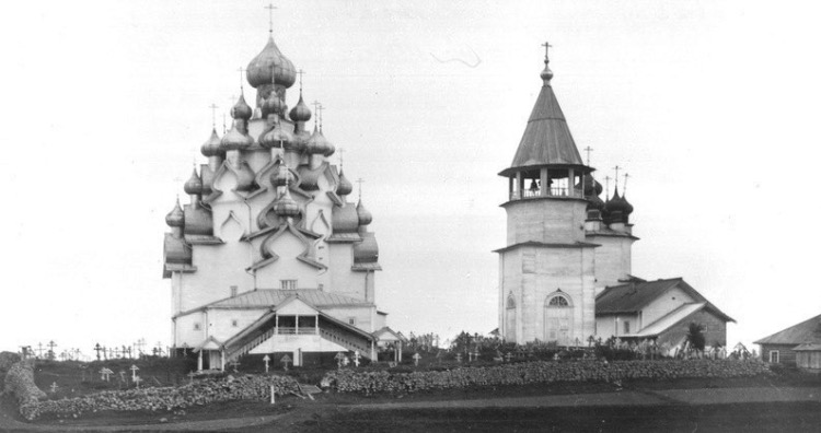 The two churches are The Church of the Transfiguration and The Church of the Intercession. Both the churches were constructed entirely out of wood. The fence around the churches was built as a means to separate the holy ground from the outside world. In the 1950s, the fence was reconstructed and replaced with a 300-meter-long structure of a log that is built upon a tall, boulder foundation.